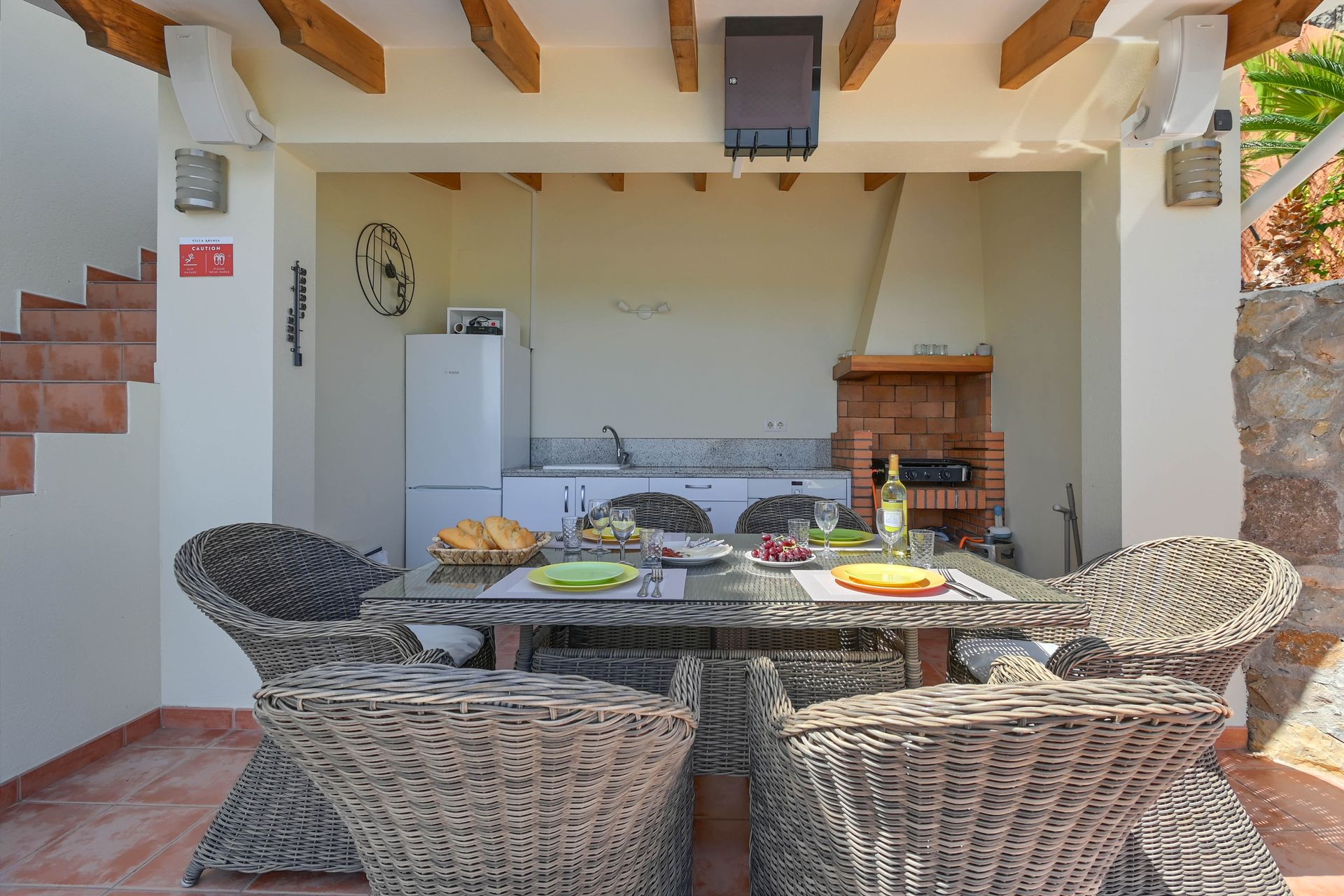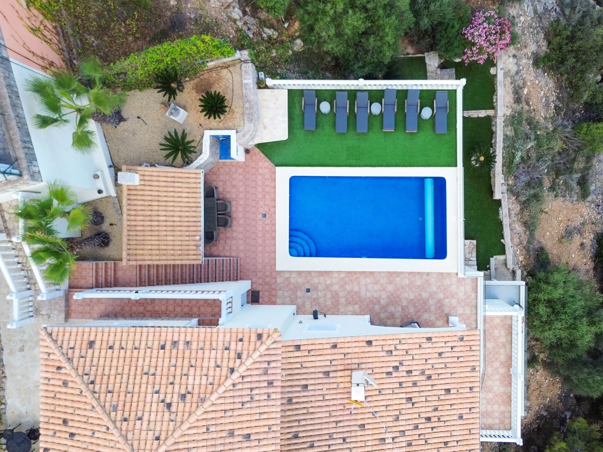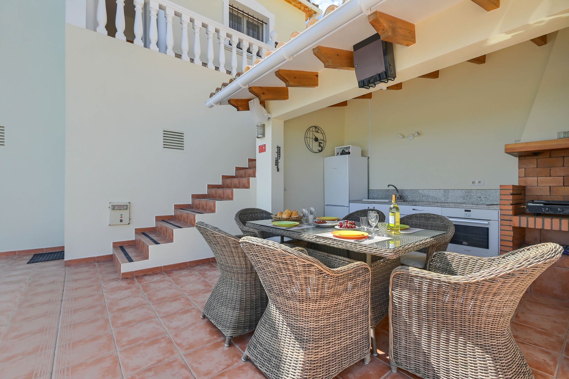 Jedes Zimmer ist mit Moskitonetzen ausgestattet und bietet somit ungestörten Schlaf. Vier moderne Badezimmer, jeweils mit Dusche und Badewanne, sorgen für höchsten Komfort und ausreichend Privatsphäre für alle Gäste. Das Herzstück der Villa ist der offene Wohnbereich, der in eine voll ausgestattete Küche übergeht. Hier finden Sie alles, was Sie für die Zubereitung köstlicher Mahlzeiten benötigen – vom Kühlschrank und Backofen über die Spülmaschine bis hin zu Kochutensilien und einer Kaffeemaschine. Genießen Sie Ihre Mahlzeiten auf der großzügigen Terrasse oder nutzen Sie den Grillplatz für gesellige Abende im Freien. Die Villa Arenja in La Sella bietet Ihnen einen privaten Pool, in dem Sie sich an heißen Tagen erfrischen können, während Sie den atemberaubenden Meerblick genießen. Der gepflegte Garten und die stilvollen Gartenmöbel laden zum Verweilen und Entspannen ein. Das Haus verfügt über einen privaten Parkplatz, zusätzlich gibt es direkt vor dem Haus ausreichend Parkmöglichkeiten. Selbstverständlich müssen Sie auch auf moderne Annehmlichkeiten wie Wlan, Satelliten-TV in verschiedenen Sprachen (Spanisch, Englisch, Deutsch) und eine Klimaanlage nicht verzichten. Eine Waschmaschine und ein Bügeleisen/-brett sorgen dafür, dass Sie sich wie zu Hause fühlen können. Erleben Sie einen traumhaften Urlaub in der Villa Arenja für 12 Personen – Ihr exklusives Zuhause in La Sella, das Ihnen unvergessliche Momente unter der Sonne Spaniens beschert.